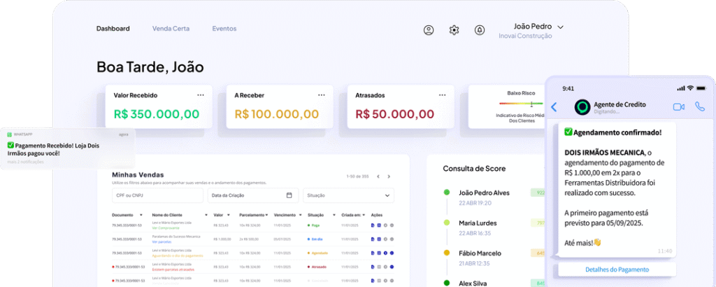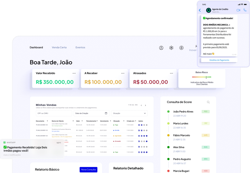 A Conffie cuida da análise de crédito, cobrança e negativação por você. Tudo automatizado, no momento certo e sem complicação.
